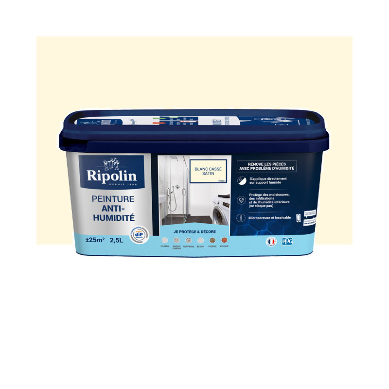 Peinture Ripolin solution anti-humidité blanc cassé satin 2,5L
