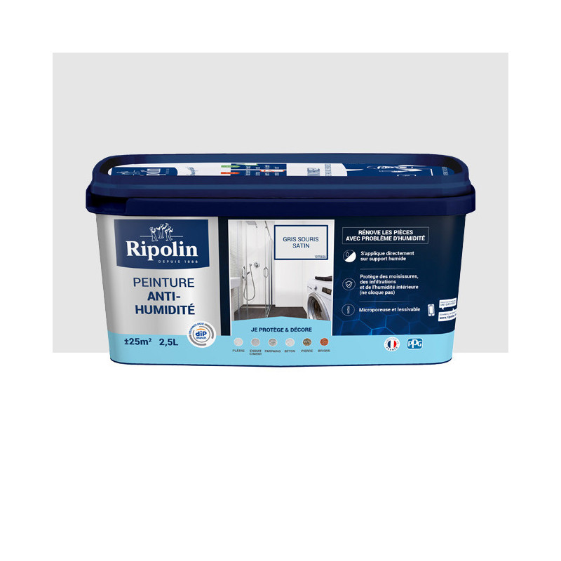 Peinture Ripolin solution anti-humidité gris souris satin 2,5L