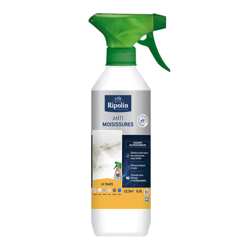 Le Spray anti-moisissures Ripolin est le traitement idéal pour éliminer et prévenir la formation de moisissures dans votre salle de bains et autres surfaces exposées à l’humidité. Facile à utiliser, il garantit un entretien rapide et efficace.