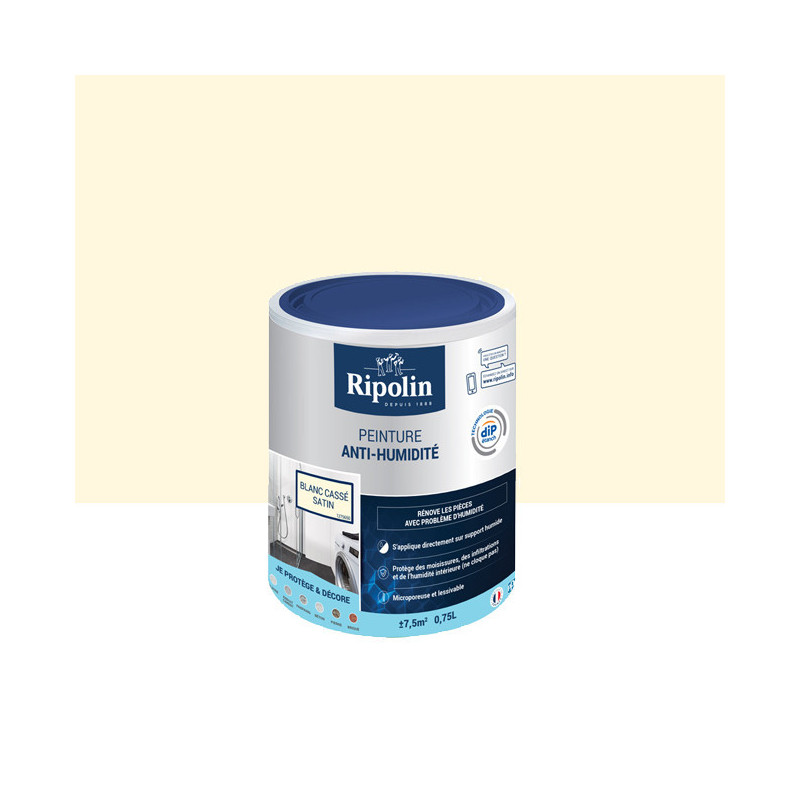 Peinture Ripolin solution anti-humidité blanc cassé satin 0,75L