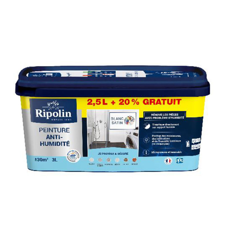 Peinture Ripolin solution anti-humidité blanc satin 3L