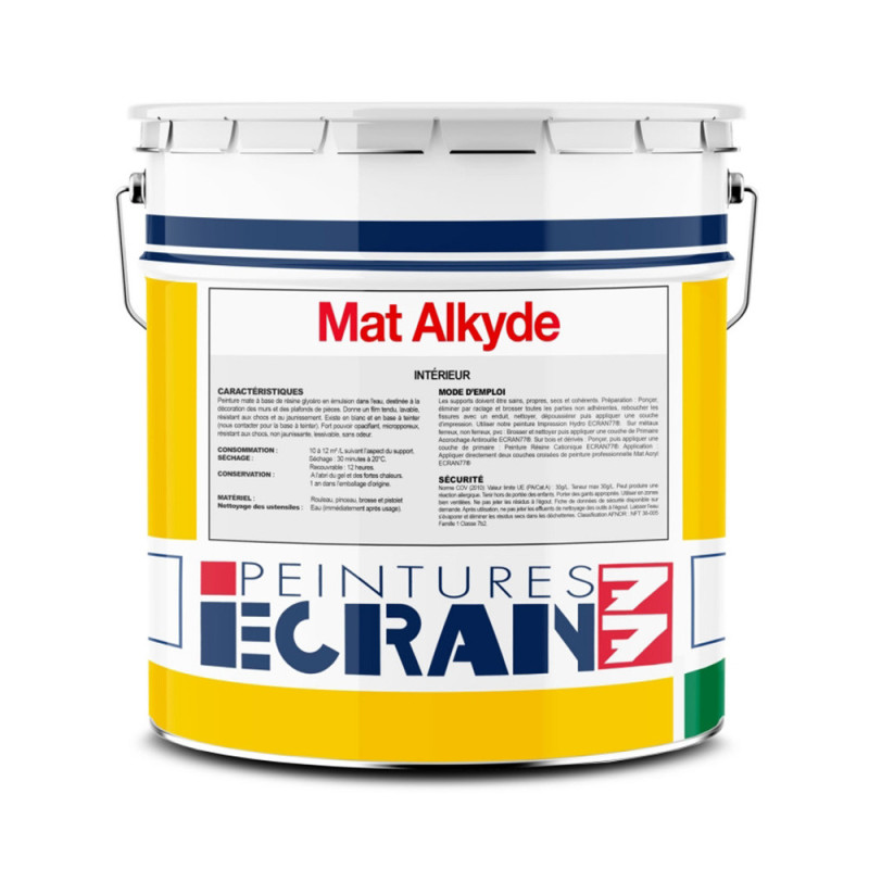 La peinture alkyde mate blanche 4L ECRAN77® est une peinture professionnelle haut de gamme, idéale pour les travaux soignés en neuf comme en rénovation sur murs et plafonds. Formulée à base de résine alkyde en émulsion dans l’eau (aussi appelée glycéro à l’eau), elle associe résistance, opacité et respect de l’environnement.