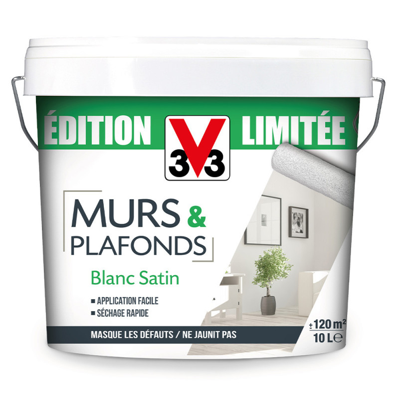 Peinture V33 murs et plafonds édition limitée blanc satin 10L