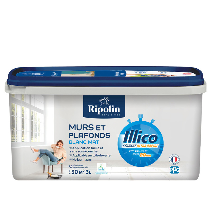 - Peinture acrylique blanc mat pour murs et plafonds