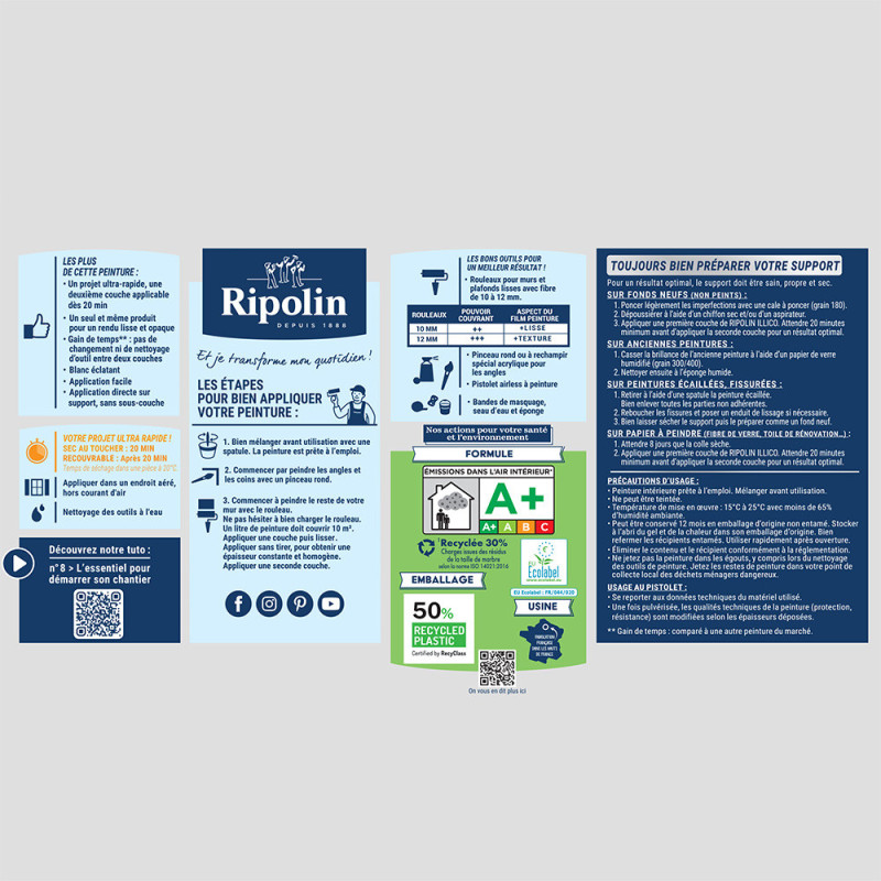 - Séchage rapide : recouvrable en 20 minutes
