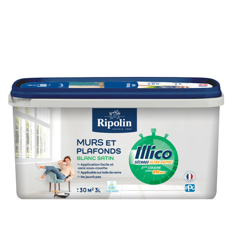 - Peinture acrylique blanc satin pour murs et plafonds