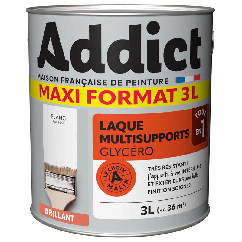Peinture Addict glycéro multi-supports murs, plafonds, boiseries et radiateurs blanc brillant 3L