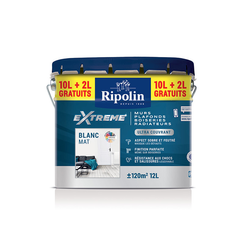 Peinture Ripolin extrême multi-supports murs, plafonds, boiseries et radiateurs blanc mat 12L