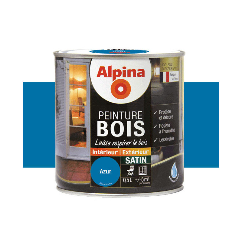 Peinture Alpina spéciale bois microporeuse bleu azur satin 0.5L