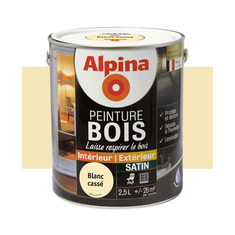 Peinture Alpina spéciale bois microporeuse blanc cassé satin 2,5L