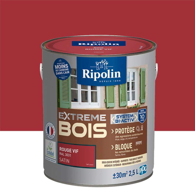 Peinture Ripolin extreme bois rouge vif satin RAL 3031 2,5 L