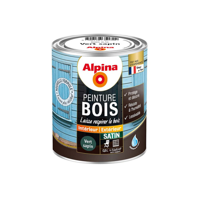 Peinture Alpina spéciale bois microporeuse Vert Sapin Satin 0,5L