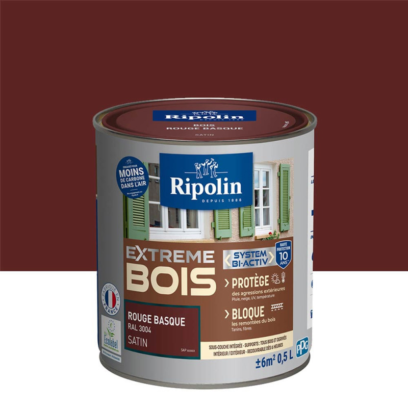 Peinture Ripolin extreme bois rouge basque satin 0,5 L