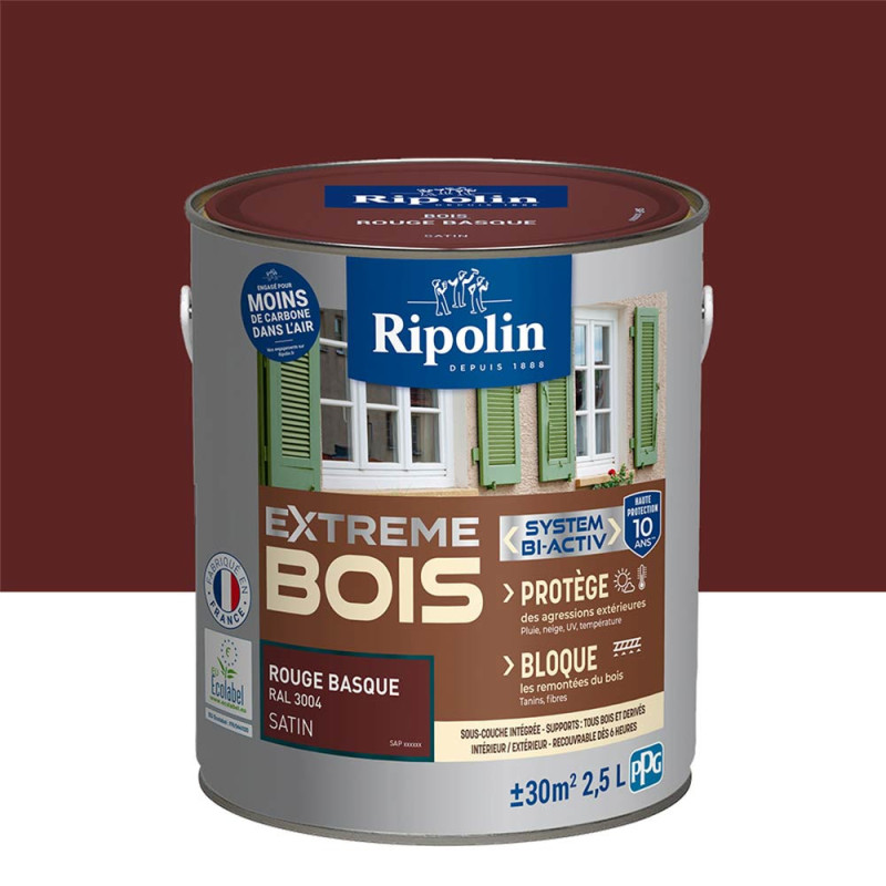 Peinture Ripolin extreme bois rouge basque RAL 3004 satin 2,5 L