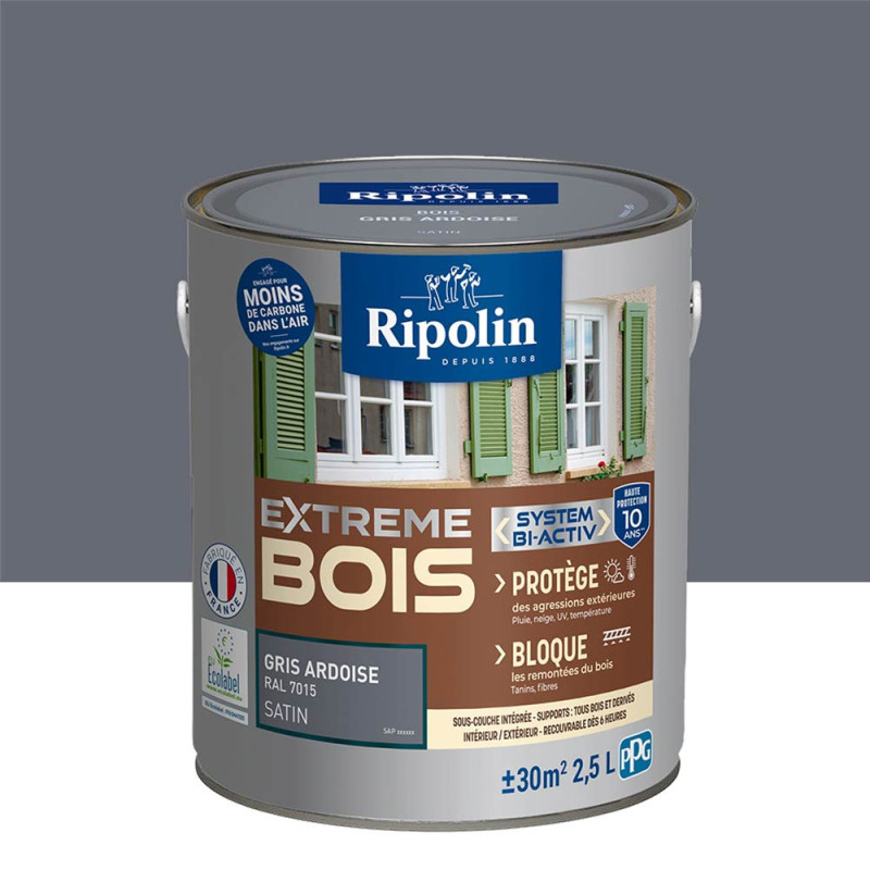 Peinture Ripolin extreme bois gris ardoise RAL 7015 satin 2,5 L