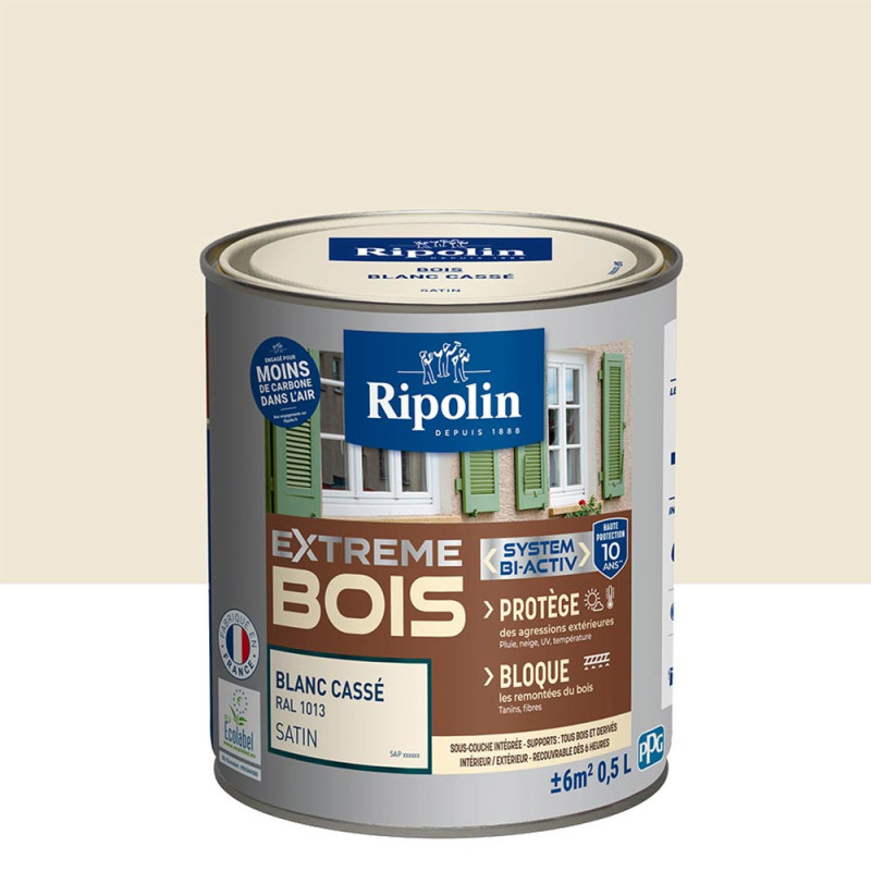 Peinture Ripolin extreme bois blanc cassé satin 0,5 L