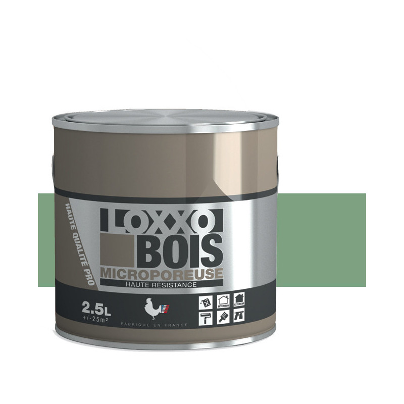 La peinture glycéro Loxxo bois de couleur vert pâle en finition satin protègera et embellira durablement vos boiseries. Elle est également microporeuse : elle laisse respirer le bois pour une meilleure tenue dans le temps.