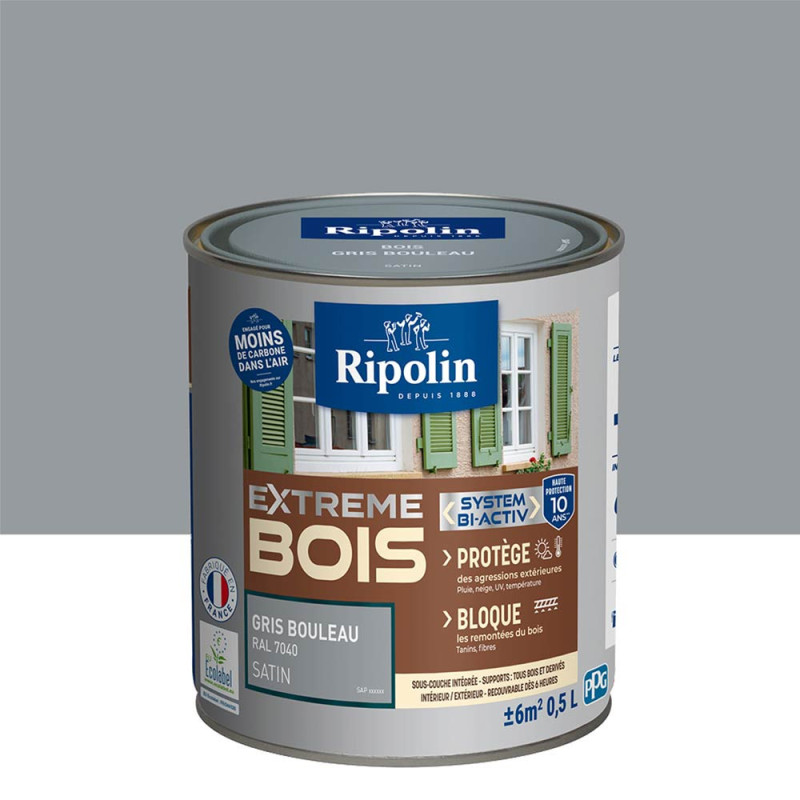 Peinture Ripolin extreme bois gris bouleau satin 0,5L