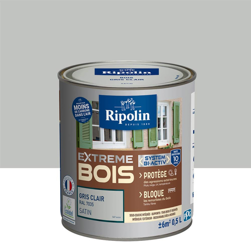 Offrez une seconde vie à vos boiseries avec la finition gris clair satin Ripolin Extreme. Cette peinture bois nouvelle génération combine performance technique et respect environnemental grâce à sa formulation à faibles émissions.