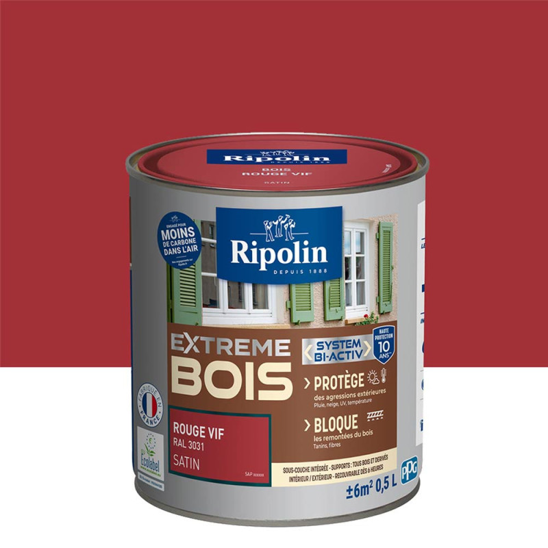 Peinture Ripolin extreme bois rouge vif satin 0,5L