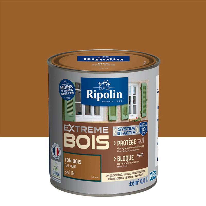 Peinture Ripolin extreme bois ton bois satin 0,5L