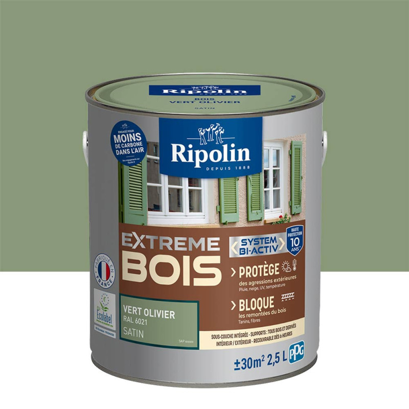 Peinture Ripolin extreme bois vert olivier RAL 6021 satin 2,5 L