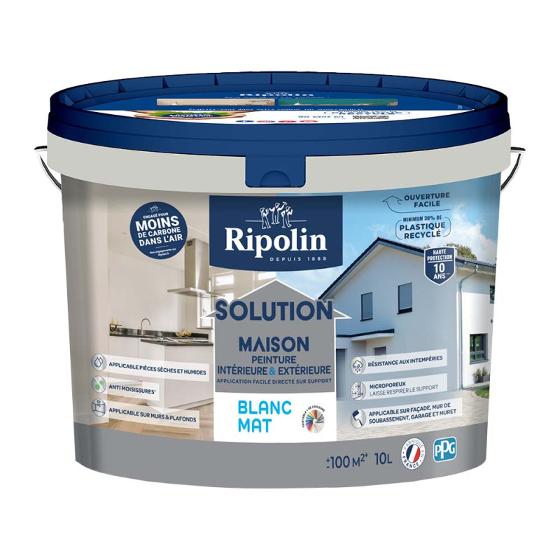 Peinture Ripolin solution pour toute la maison blanc mat 10L
