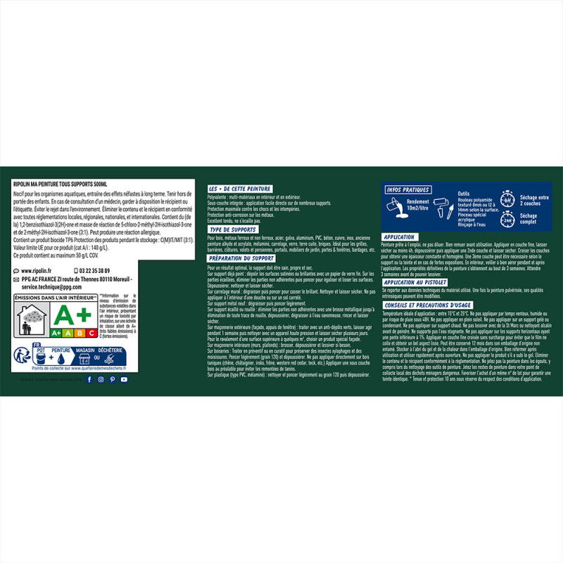 Peinture Tous supports Ripolin vert basque mat 0.5L