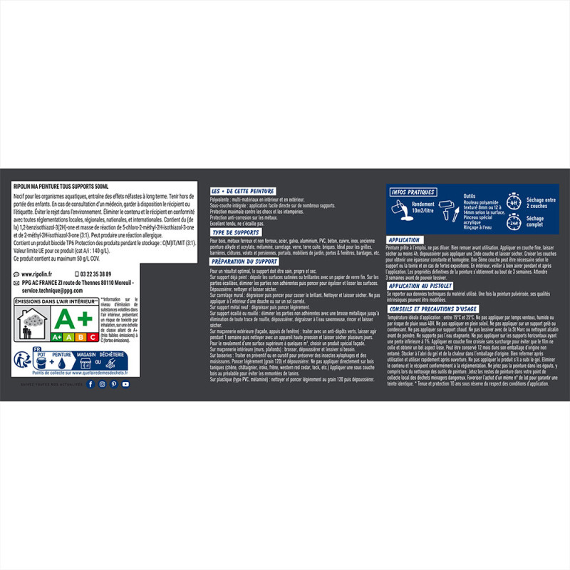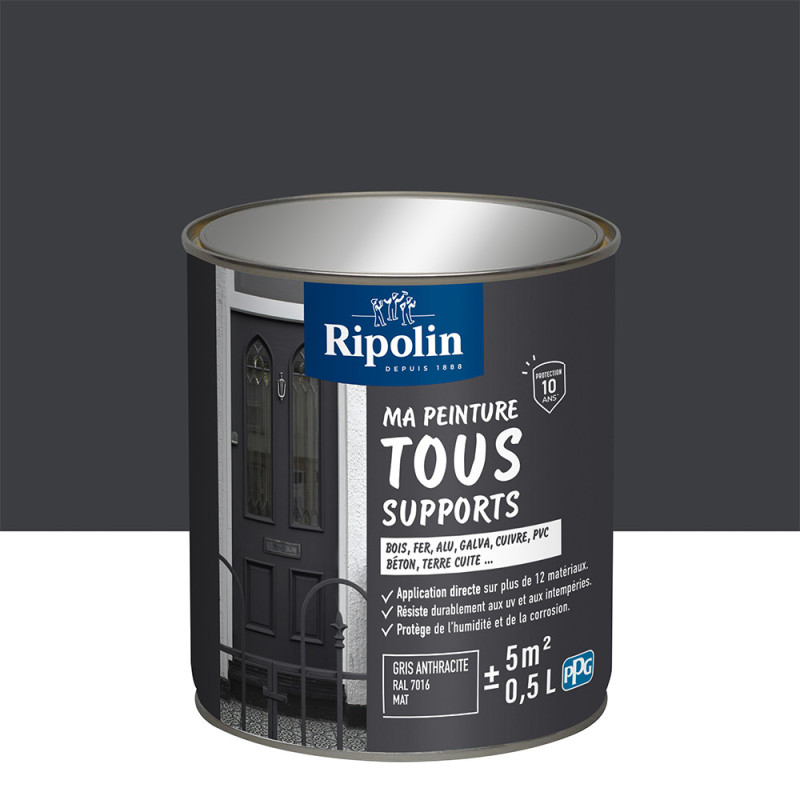 Peinture Tous supports Ripolin gris anthracite mat 0.5L