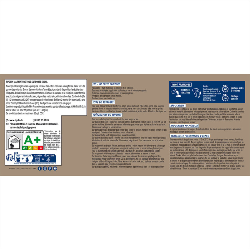 Peinture Tous supports Ripolin beige moka mat 0.5L