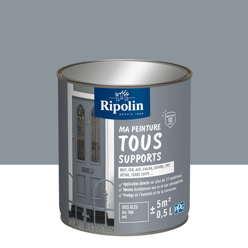 Peinture Tous supports Ripolin gris bleu mat 0.5L