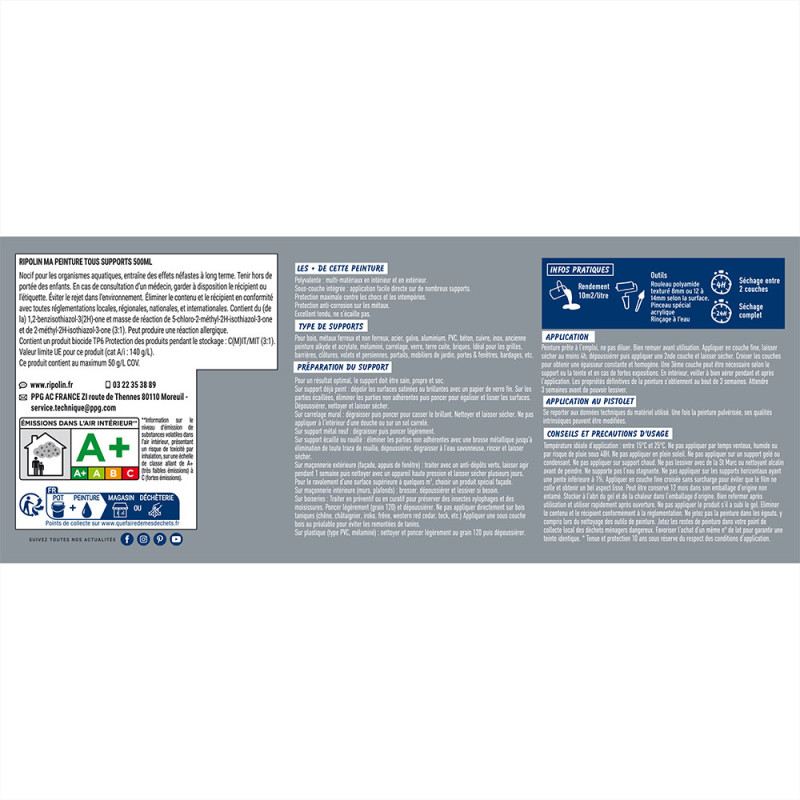Peinture tous supports Ripolin gris bleu mat 0,5 L