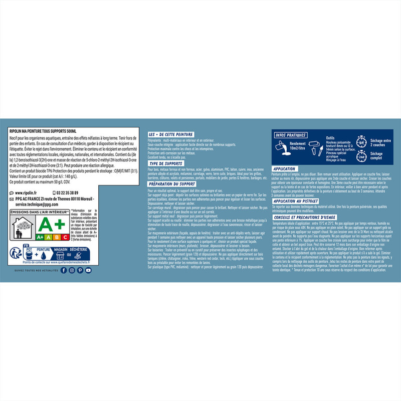 Peinture tous supports Ripolin bleu pastel mat 0,5 L