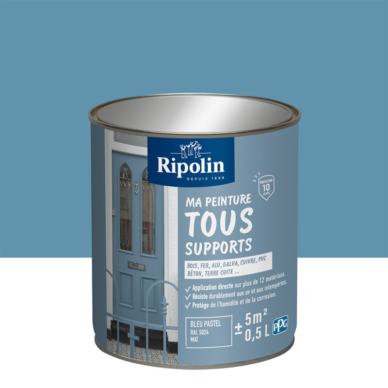 Peinture Tous supports Ripolin bleu pastel mat 0.5L