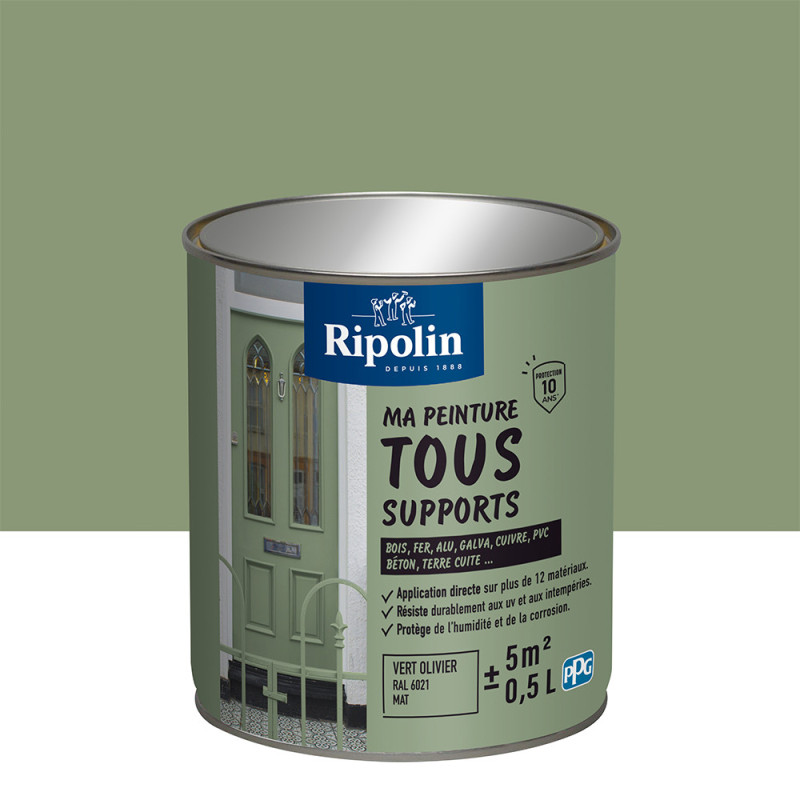 Peinture tous supports Ripolin vert olivier mat 0,5 L
