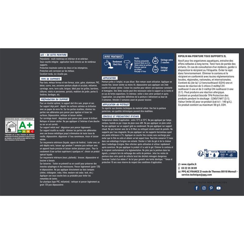 Peinture Tous supports Ripolin gris anthracite mat 2L