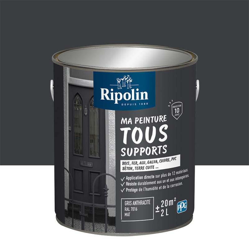 Peinture tous supports Ripolin gris anthracite mat 2 L