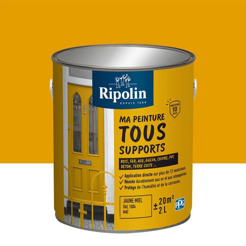 Peinture Tous supports Ripolin jaune miel mat 2L