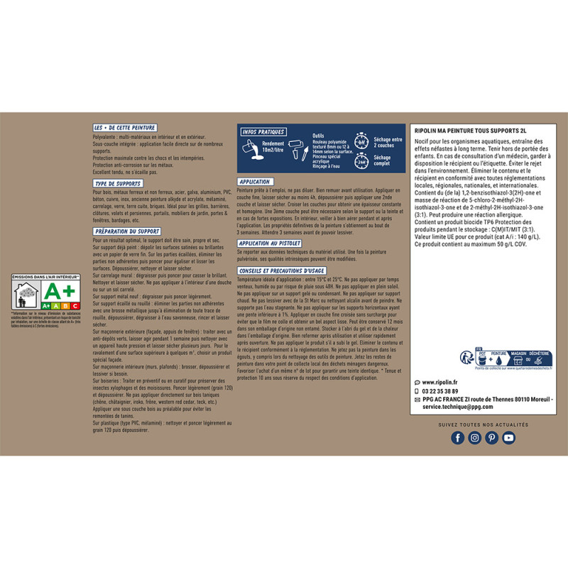 Peinture Tous supports Ripolin beige moka mat 2L