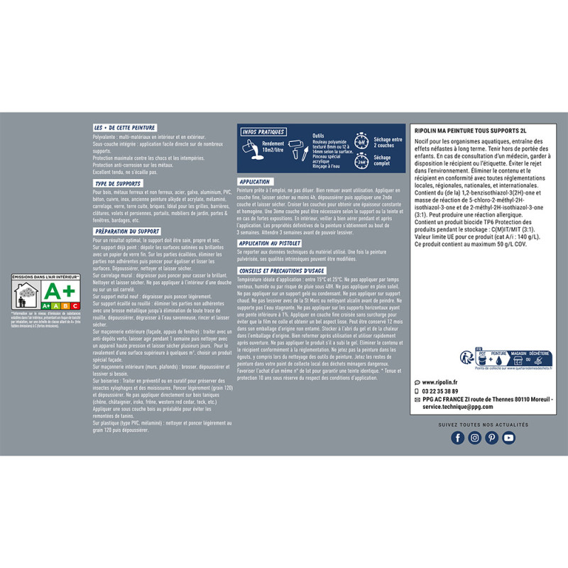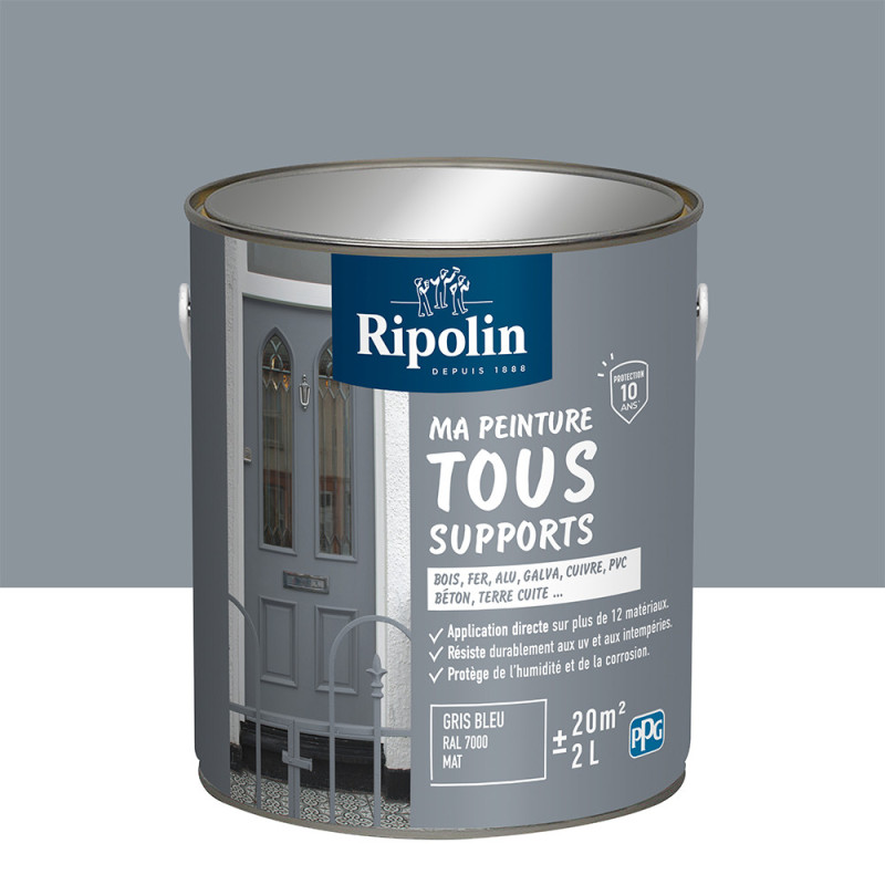 Peinture Tous supports Ripolin gris bleu mat 2L