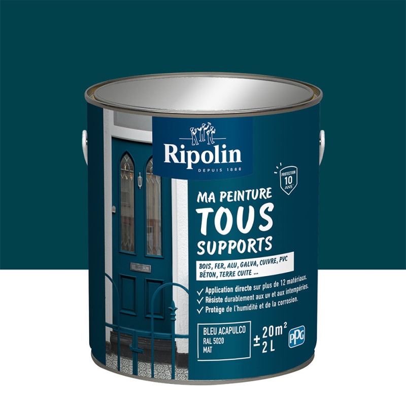Peinture Tous supports Ripolin bleu acapulco mat 2L
