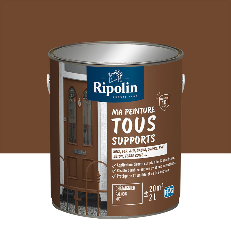 Peinture Tous supports Ripolin marron châtaigner mat 2L