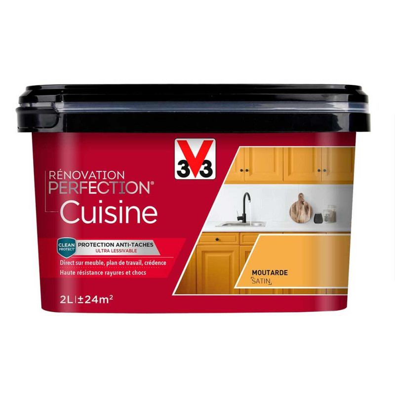 Peinture V33 rénovation cuisine moutarde satin 2L