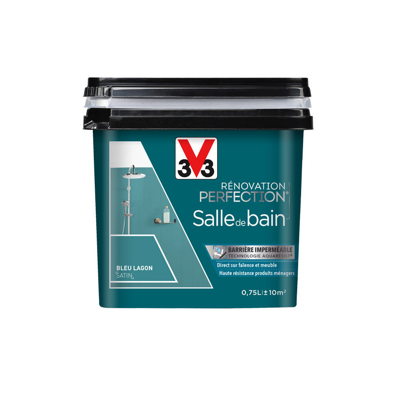 Peinture V33 rénovation salle de bain bleu lagon satin 0,75L