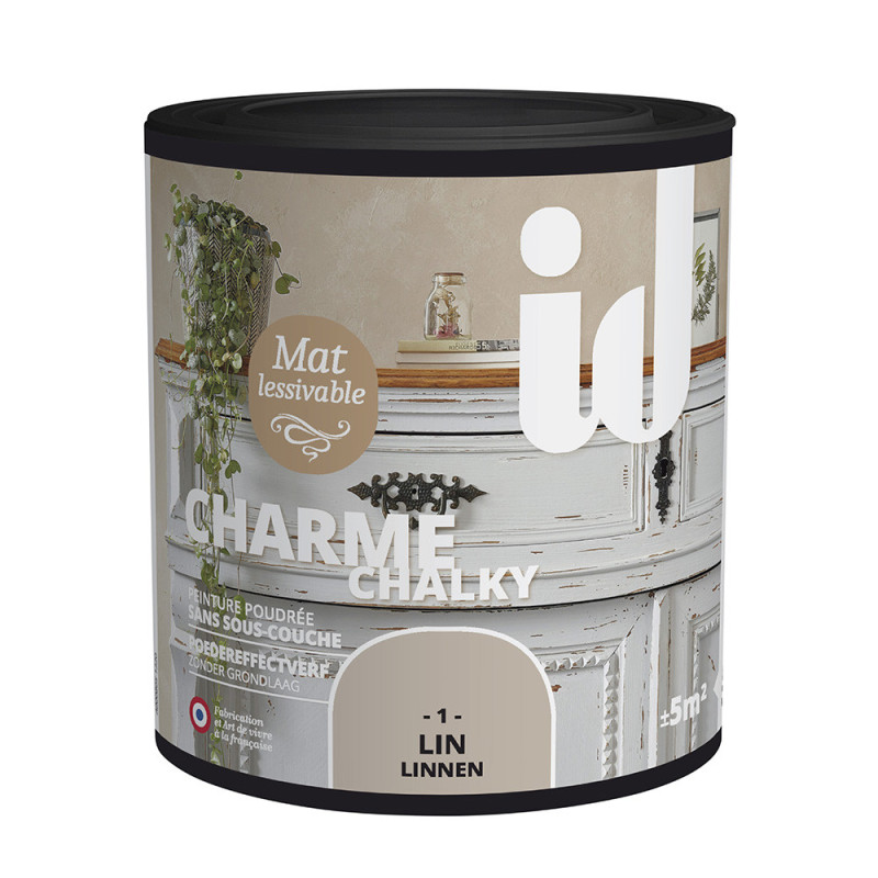 Peinture Id Déco multi-support charme méditerranée poudrée lin mat 0,5 L