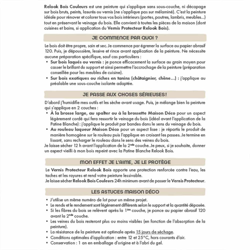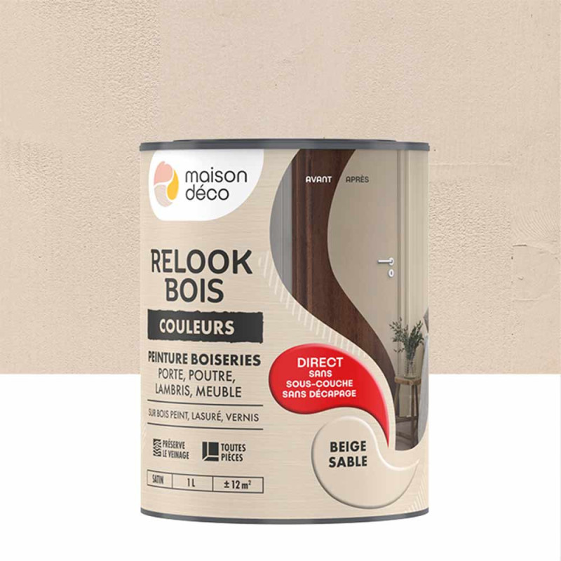 Découvrez une nouvelle dimension de l'élégance avec la Peinture Relook Bois Maison Déco, dans son éclatant ton de Beige Sable....