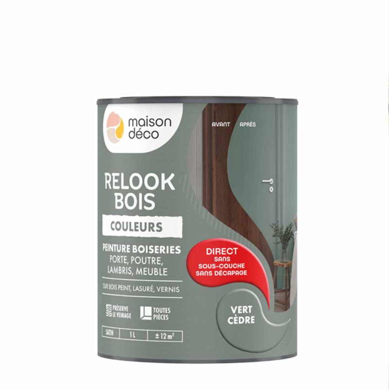 Peinture Relook Bois Maison déco unie vert cèdre 1L