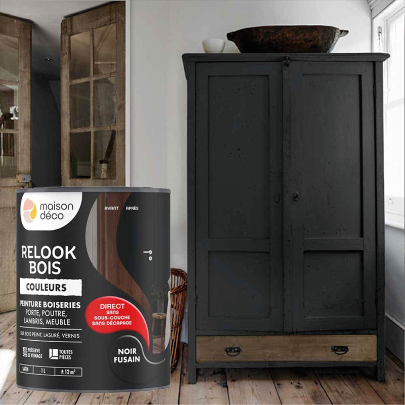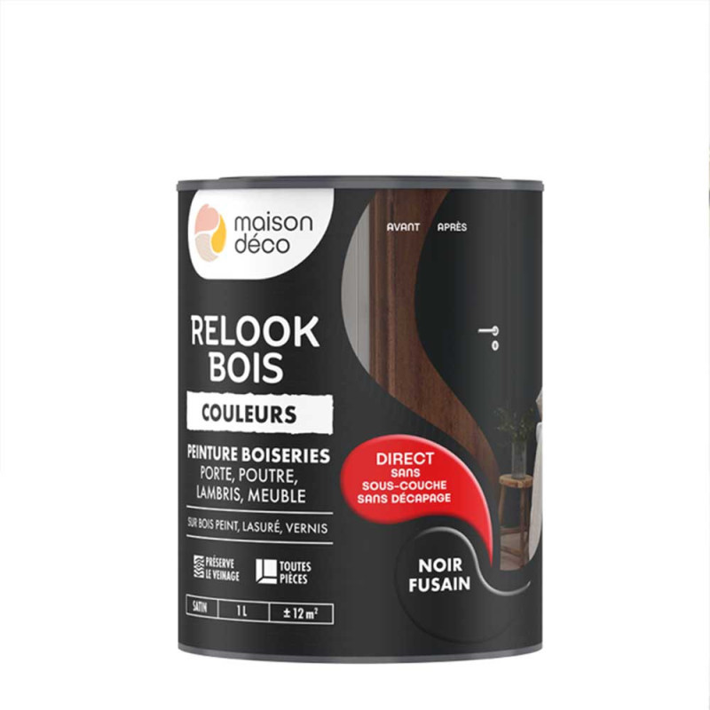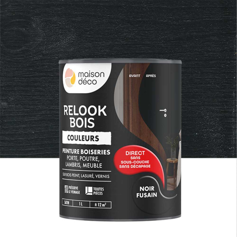 Peinture Relook Bois Maison déco unie noir fusain 1L