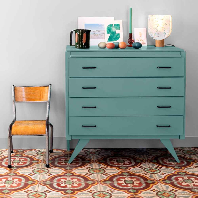 La peinture pour meuble ID ECO MEUBLE bleu lagune 300ml offre une finition velours en phase aqueuse, parfaitement adaptée à la rénovation de meubles et boiseries. Grâce à sa forte opacité, elle garantit une couvrance optimale dès la première couche, assurant un rendu uniforme et intense. Lessivable et résistante, cette peinture facilite l’entretien tout en protégeant les surfaces des marques et salissures. Polyvalente, elle adhère sur divers supports pour un résultat durable et soyeux. Le bleu lagune apporte une touche fraîche et apaisante, idéale pour moderniser votre décoration avec une teinte élégante et écologique.