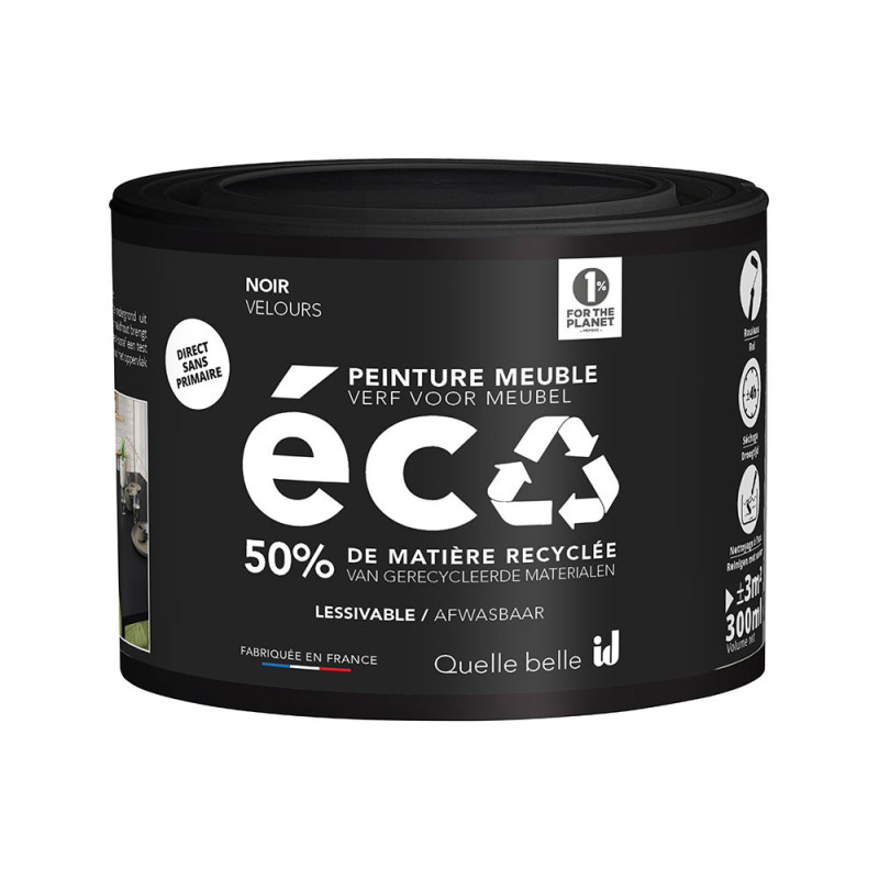 La peinture pour meuble ID ECO MEUBLE noir 300ml se caractérise par sa finition velours en phase aqueuse, conçue pour offrir une forte opacité et une couvrance optimale dès la première couche sur meubles et boiseries. Lessivable et résistante, elle assure un entretien facile tout en protégeant durablement les surfaces des salissures et frottements. Polyvalente, cette peinture adhère parfaitement sur divers supports pour un rendu uniforme, lisse et élégant. Le noir profond apporte une touche contemporaine et sophistiquée, idéale pour moderniser vos espaces avec un produit performant, durable et respectueux de l’environnement.